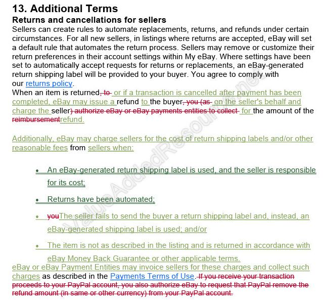 More cleaning up PayPal language and stipulating all the ways eBay can charge sellers for return shipping.