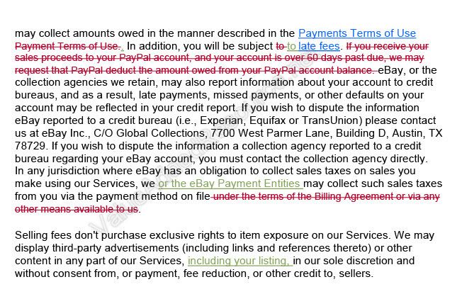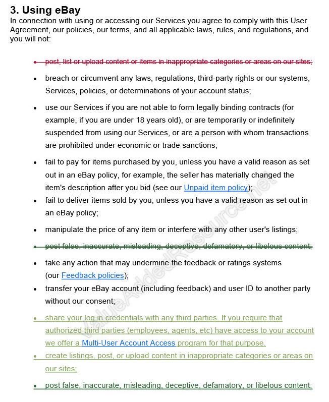 Excerpts provided are not meant to be an exhaustive list of all changes to the User Agreement. As always, we recommend reviewing all terms, conditions and agreements before using the eBay platform.