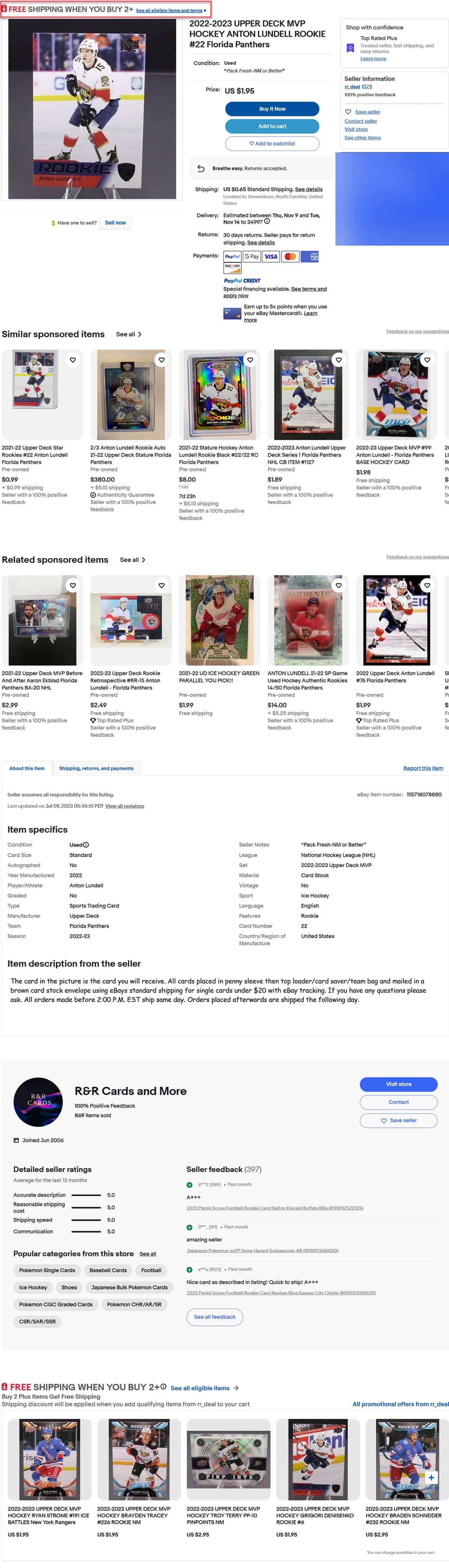 In the standard View Item page design, if a seller is running a discount or shipping promotion, it will usually show a banner at the top as well as showing specific listing that qualify for the promotion in a module under the description and feedback.