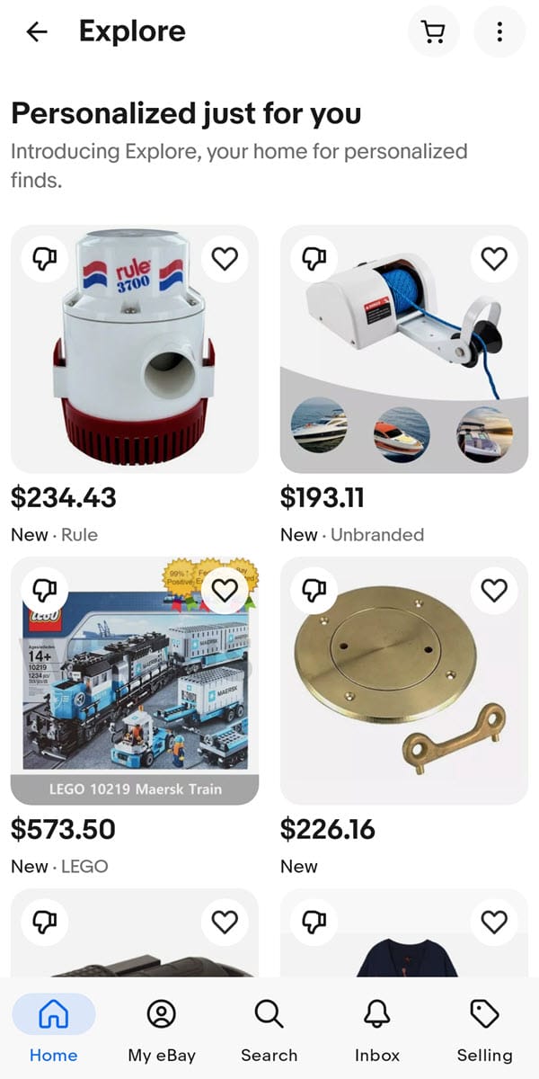 But now that eBay has expanded to include items in additional categories, the "update interests" button is gone on both desktop and mobile app, leaving the user with just a random selection of items theortically personalized based on their past views and searches.