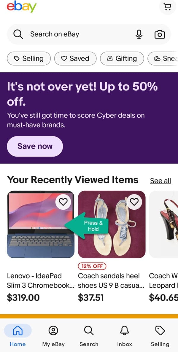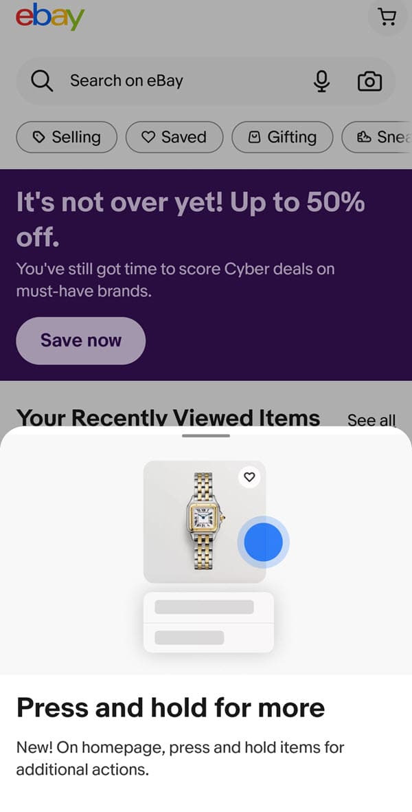 Are you still seeing Press, Hold, Discover on the eBay homepage in the app? Let us know in the comments below!