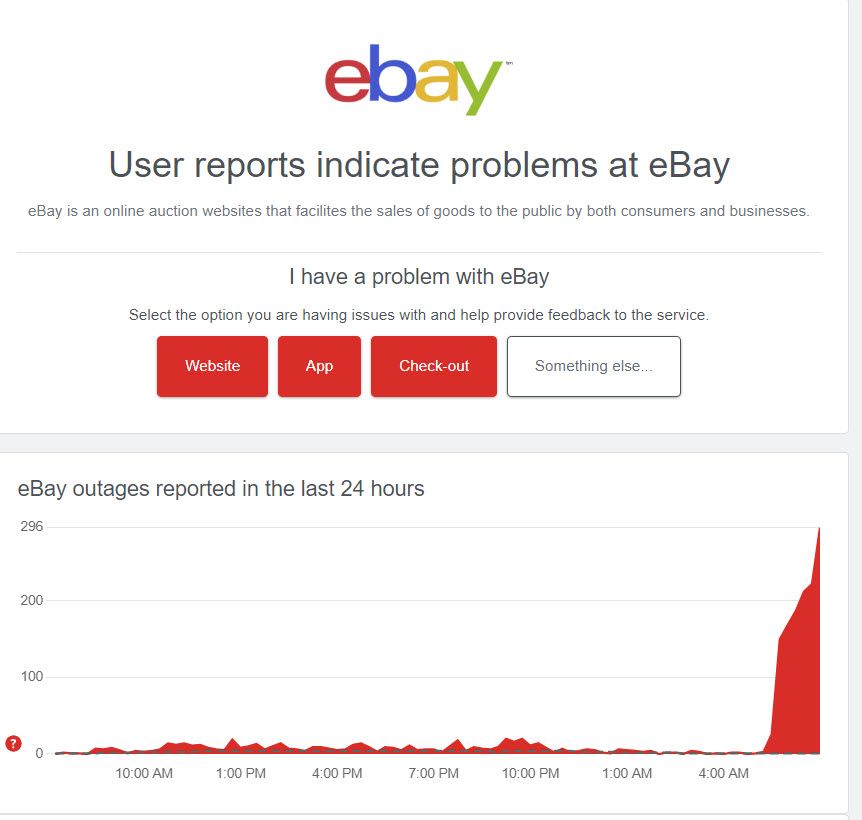 DownDetector is also showing a major spike in issues at eBay this morning.