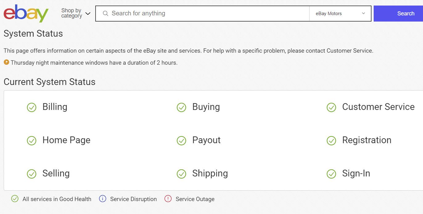 But as usual, eBay's own system status page shows no disruptions or outages.
