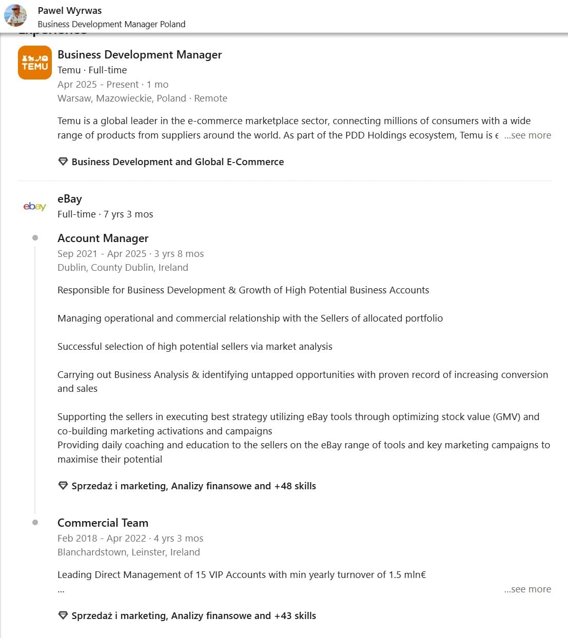 The eBay UK business development exit to Temu continues with Pawel Wyrwas leaving after ~7 years at the company.