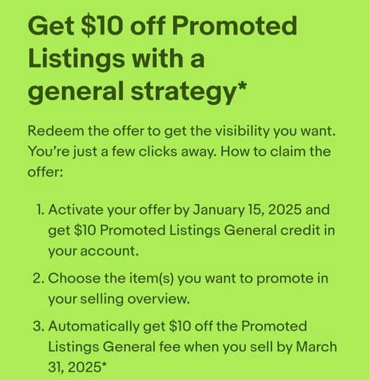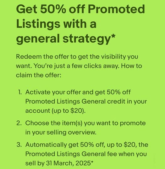 Or this one offering 75% up to $200 on Promoted Listings Priority cost per click ads.