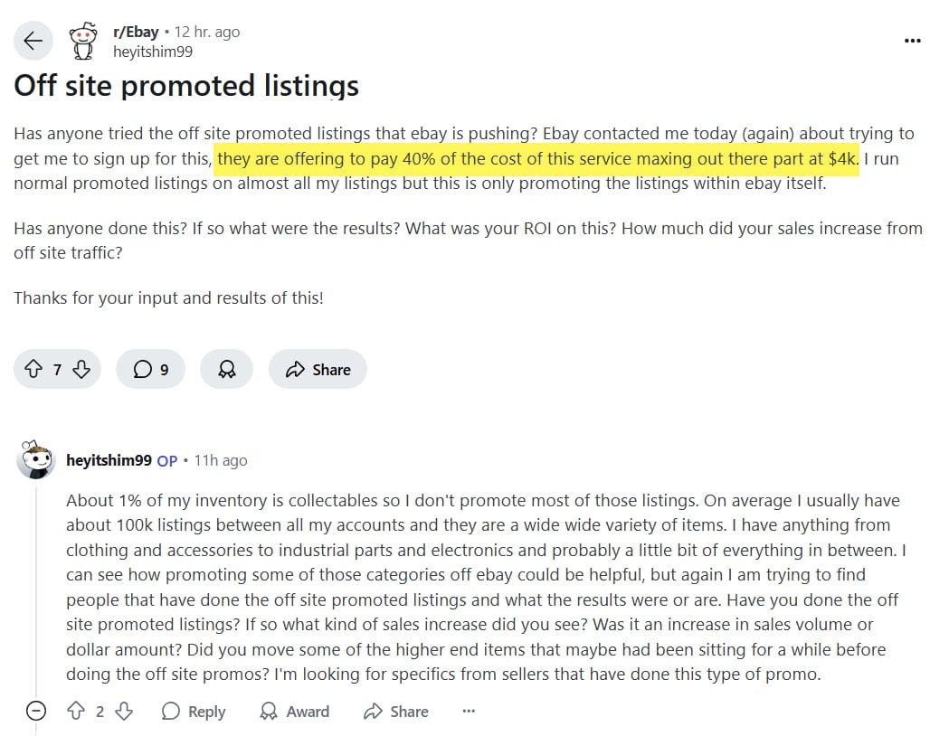 And if all these ad fee credits don't already seem desperate enough, Australian sellers on Reddit say they've received unsolicited phone calls from eBay trying to badger them into signing up for Promoted Listings.