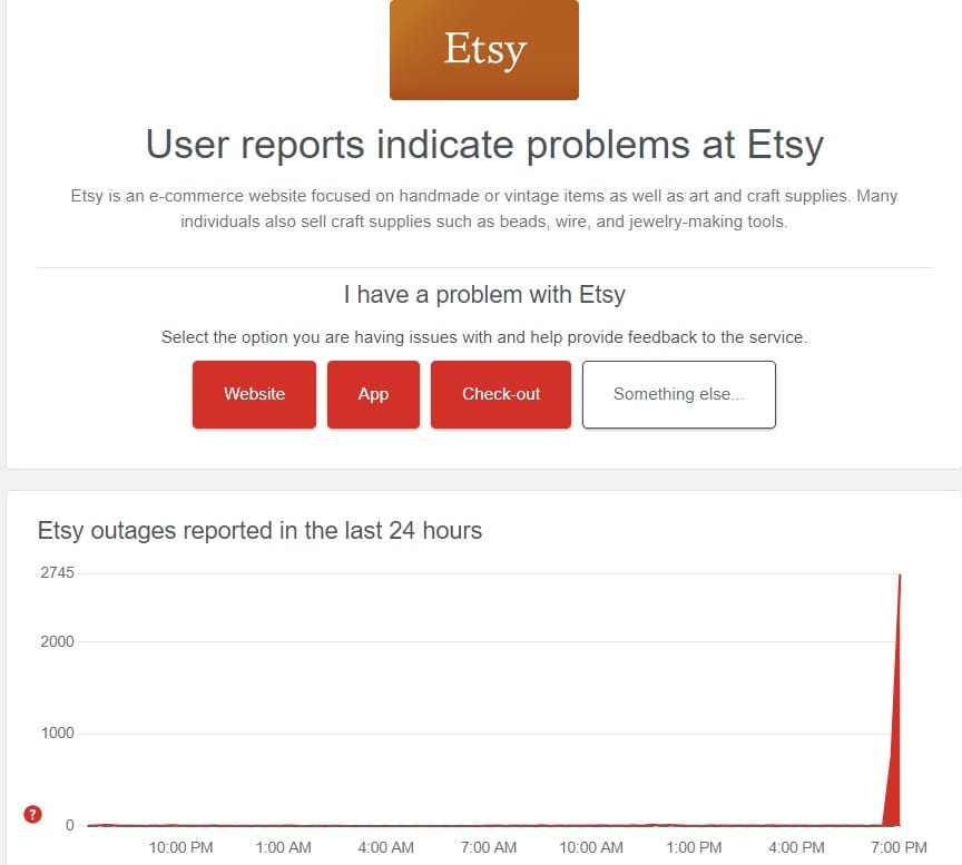 Etsy is experiencing major site problems including 429 Too Many Requests error in Shop Manager and checkout issues.