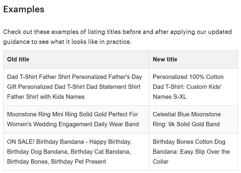 They also provided some before and after examples of titles optimized with the new guidance applied.