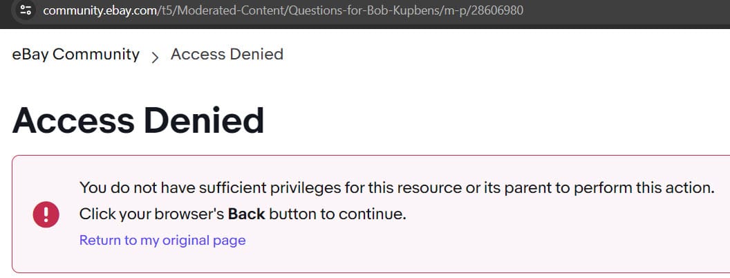 Interestingly, all of the links to posts by or discussions with Kupbens that once resided in the eBay community have been taken private and removed from public viewing.