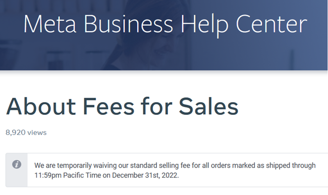Facebook / Meta has once again extended the waiving of selling fees for orders shipped through their marketplace, this time out to December 31, 2022.