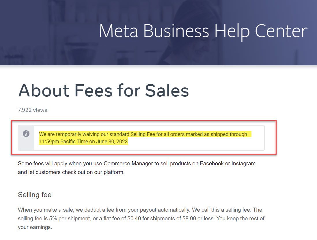 It looks like this time Facebook really means it when they say the fee waiver will expire on June 30, 2023 - however instead of going ahead with the 5% selling fee they had originally announced, they will only be charging a payment processing fee.