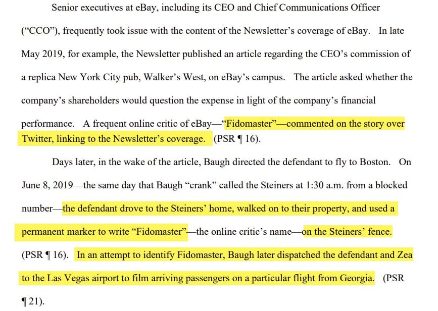 He even went so far as to create a fake Twitter account purporting to be a disgruntled ex-eBay employee who claimed to have damning video evidence of execs behaving badly in a failed attempt to draw out unsuckEBAY and establish a connection to the Steiners.