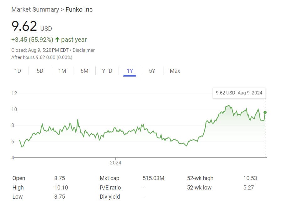 That investment so far hasn't worked out too well for eBay as Funko has seen a massive drop in stock price since that time, currently at $9.62 per share after vacillating between ~$6.00 - $10.00 over the last year.