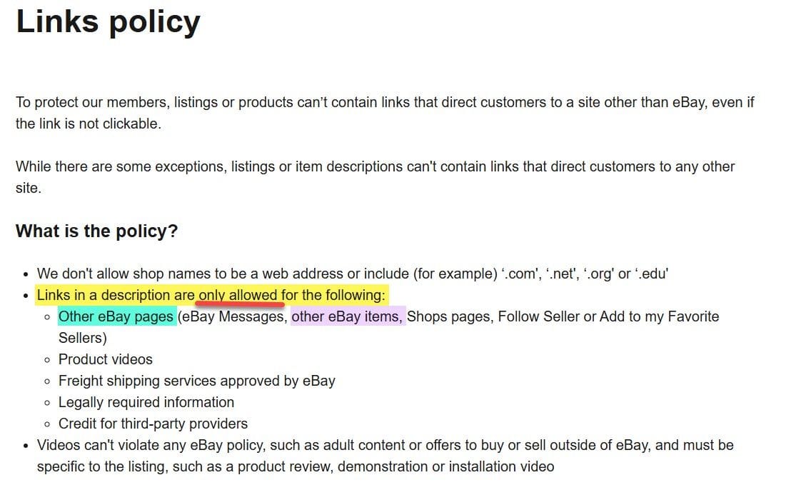 However, your link to the full policy shows that it still says that links to another eBay item are allowed. Did that policy change recently and the page just hasn't been updated yet?