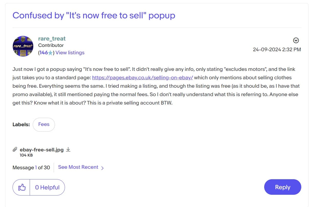 It's also possible eBay could have shown it to US users in error or those reporting it to Justin Resells could be UK based even though he himself is in the US - in which case it could simply be an expansion of fee free selling for private sellers in the UK to all categories (excluding Motors) instead of the current limitation to clothing sellers only.