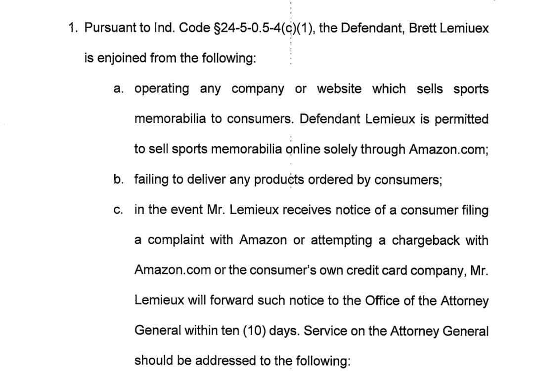 Additional legal issues in 2018, prohibited operating a sports memorabilia business. Oddly enough, still allowed to sell through Amazon.