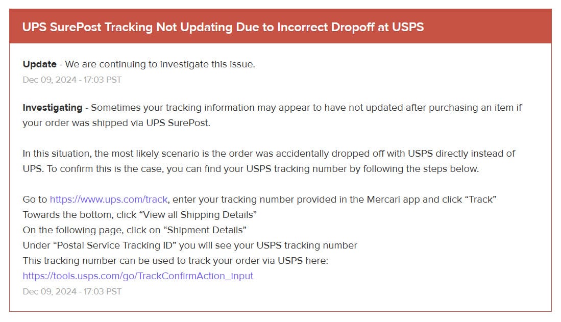 But it would seem Mercari users may not be getting the message, resulting in problems with tracking UPS Surepost labels purchased through the platform that are apparently clogging up support requests.