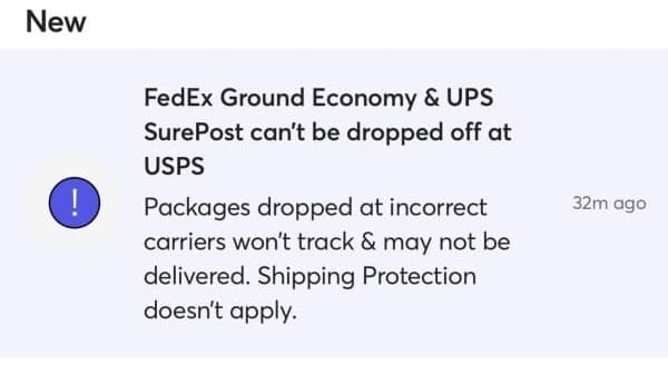 Mercari has now added additional automated messaging that includes FedEx Ground Economy (previously SmartPost) as well as UPS SurePost, warning sellers that these packages can no longer be dropped off at USPS facilities.