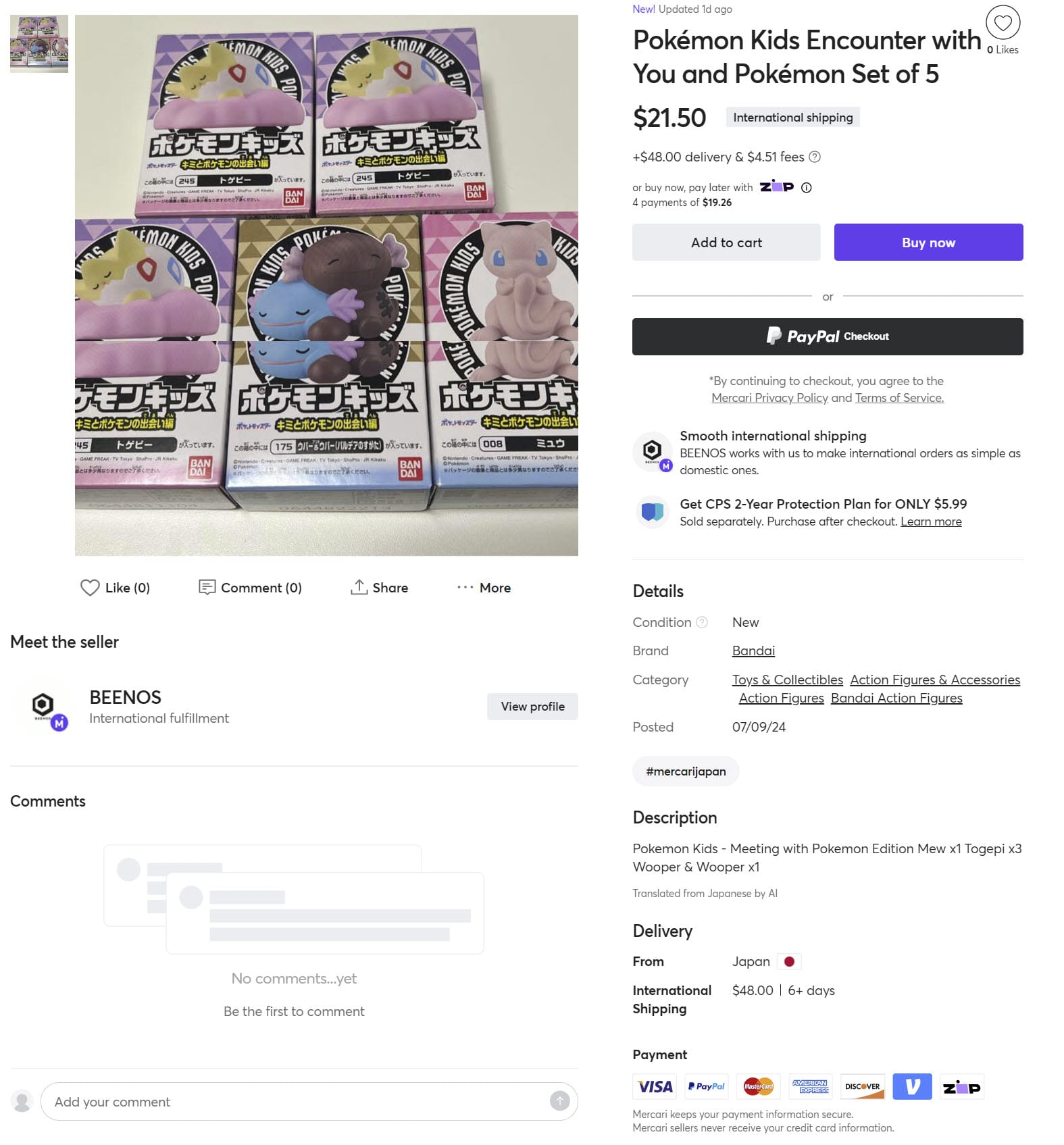 All these Japan listings popping up is so annoying. Shipping is $64 and on top of all those Mercari fees? Pass