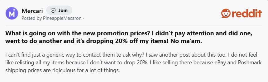 Mercari Forces 20-30% Discount To Promote Items With No Notice To Sellers