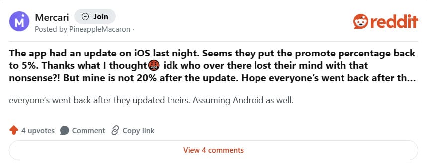 Mercari has not responded to requests for comment about the Promote increase at time of publishing.