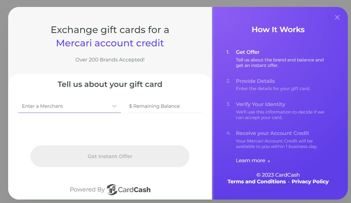 Mercari is working with CardCash to roll out a new feature that allows users to redeem and convert eligible gift card balances* into Mercari credit, to be used for purchases on the Mercari app or Mercari.com.Who is CardCash and what does it do?