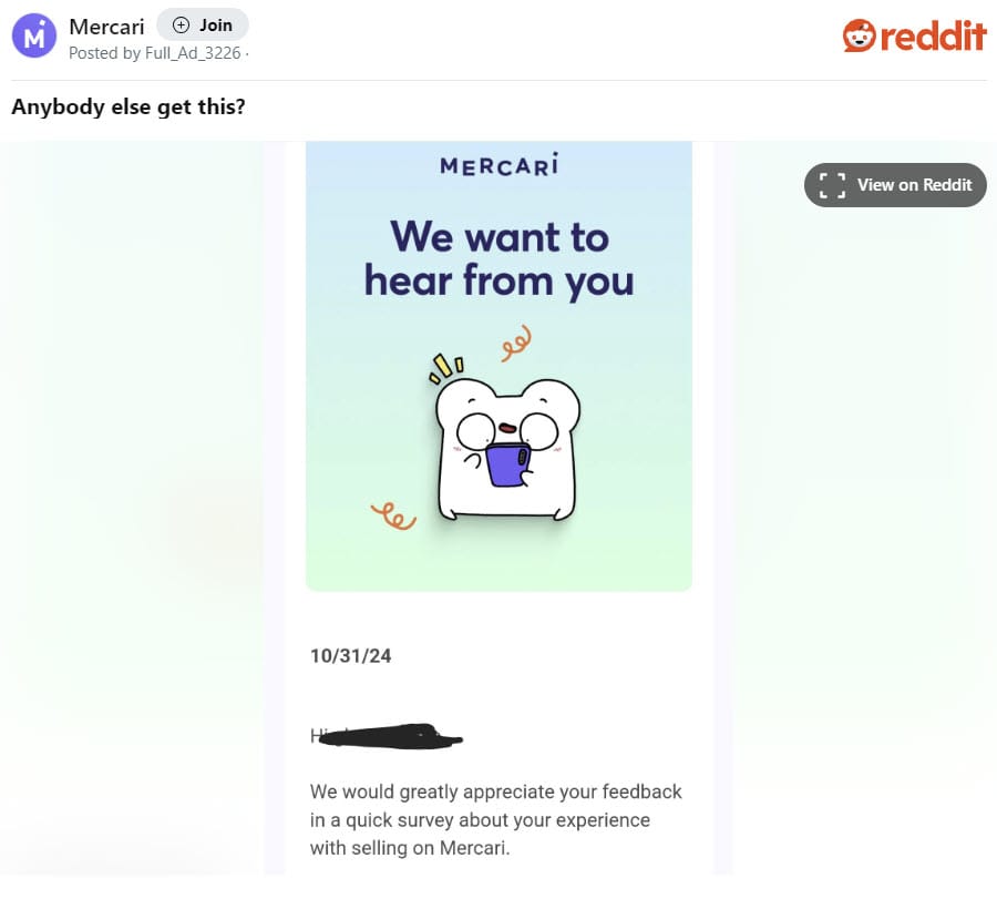 Did you receive this survey from Mercari? If so, I'd love to hear more about what the questions were about - leave a comment below or contact me!