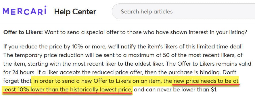 Mercari of course will say that sellers are still free to manually change the amount of the offer and it is the seller's responsibility to understand what they are agreeing to before hitting the "send" button on offers, but ultimately they know a certain amount of sellers will not do the math or even notice the suggested amount no longer defaults to the minimum 10%.