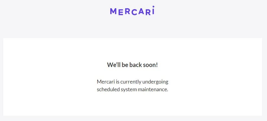 Mercari US was completely down for several hours this morning with many users questioning whether it was really a scheduled outage for maintenance, as the error message claimed, or a sign of bigger technical problems across the site, including an automated rating issue that delayed payment for some orders.