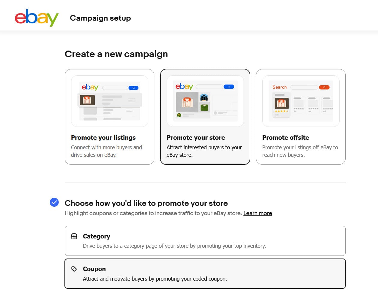 eBay also recently expanded Promoted Display Ads to include the ability to advertise a coupon code, not just store pages.