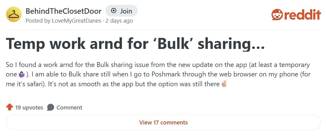 What do you think of Poshmark killing off the Bulk Share option in the app and other recent decisions being made by new leadership at the company? Let us know in the comments below!