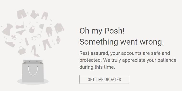 Poshmark is currently undergoing a major outage as users are unable to access the site, receiving the page not found "oh my posh, something went wrong" error message.