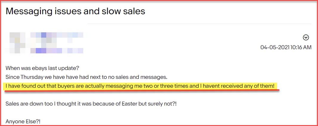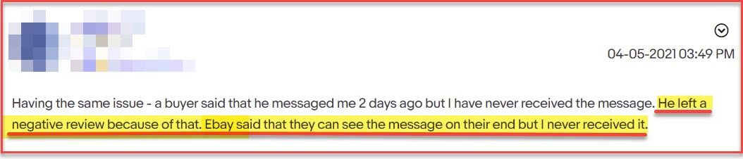 I'm seeing multiple reports from eBay sellers who say they are not receiving messages from buyers.