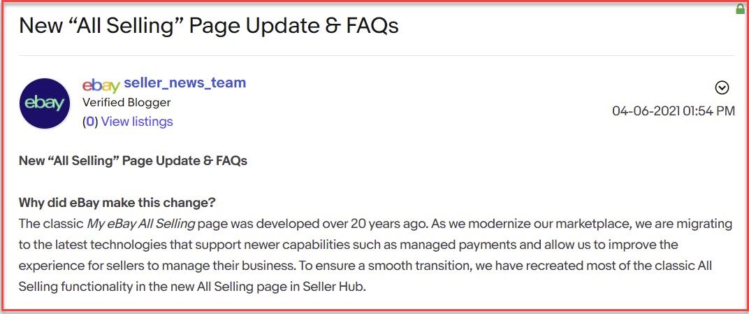 I have to wonder if this latest glitch is related to the many changes being made to the backend and selling pages. eBay has been pushing out updates and "new experiences" at breakneck speed - and the transition hasn't always been as smooth.