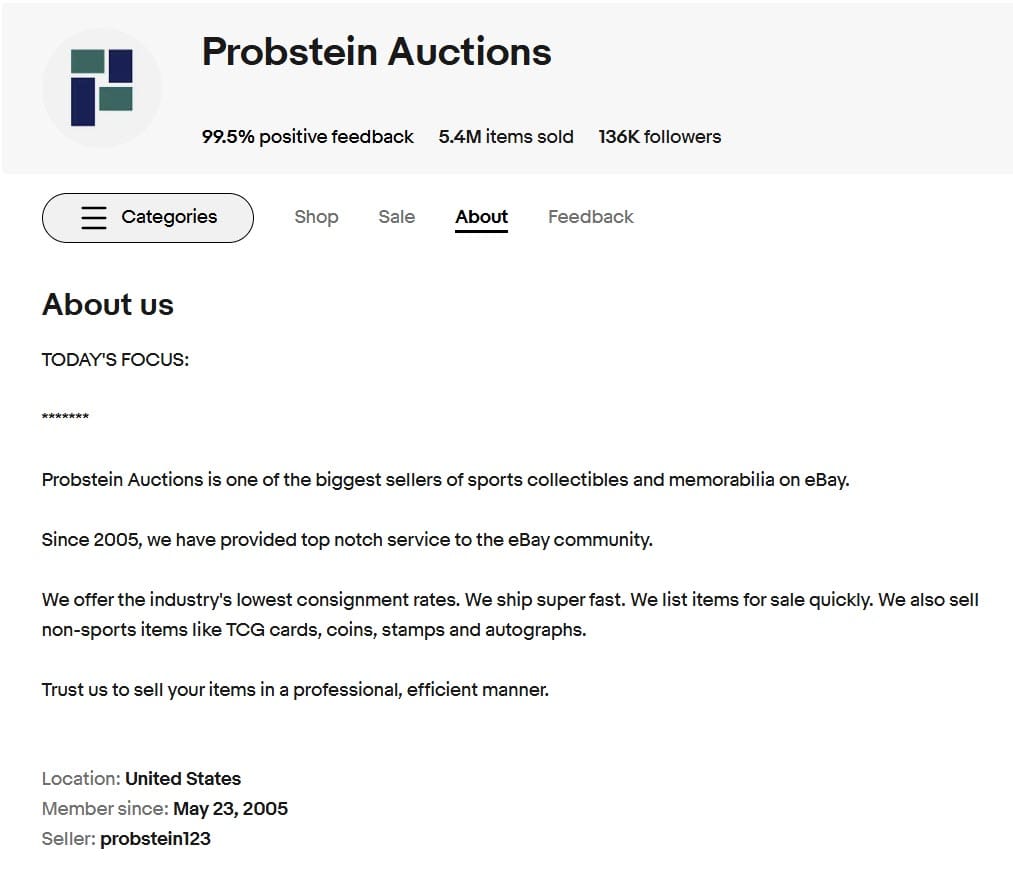 While there was no further comment on the future of Probstein Auctions on eBay, it will not be surprising if their year-to-year deal ends or at least significantly changes after 2025.