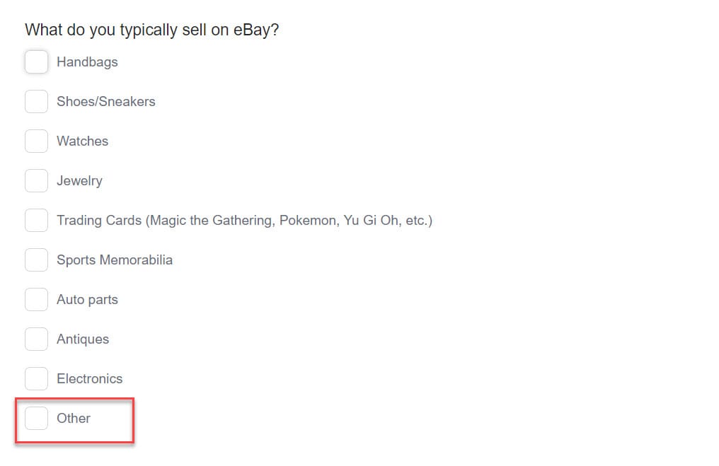 And don't worry if you don't sell in one of eBay's main focus verticals like sneakers, handbags, trading cards, jewelry, or car parts - ROCC and CWA still want to hear from you, just select the "other" option if none of the rest apply.
