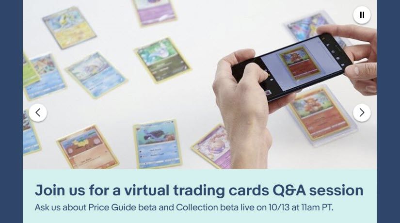 The weekly eBay community chat is usually a general chat, open to any topic. However, occasionally they will designate a week to a dedicated topic and this coming week it will be a "virtual trading cards Q&A session" to discuss Price Guide and Collections beta.