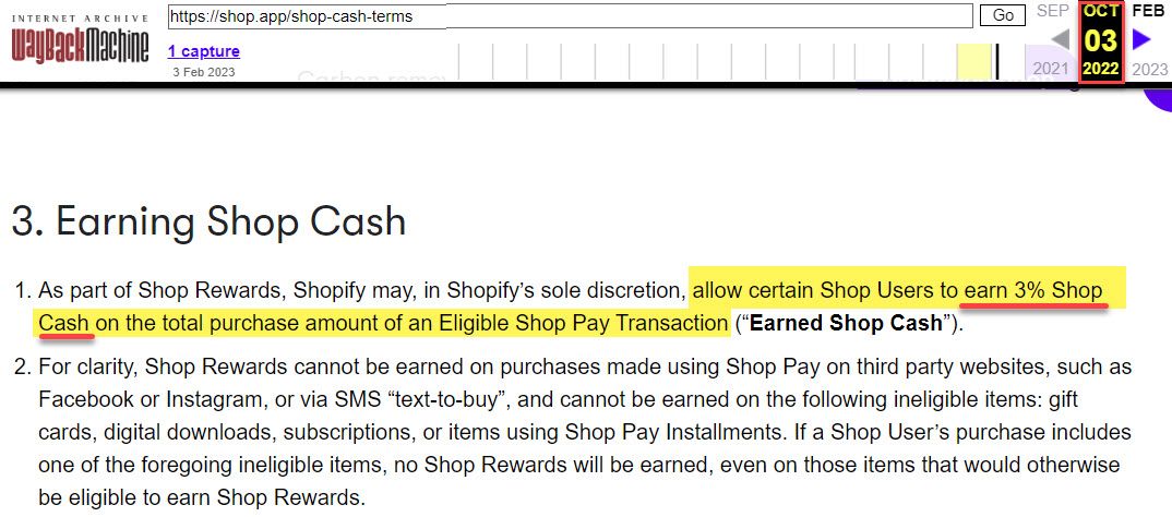 As always, read the terms and conditions carefully - Shop Cash rewards requiring using Shop Pay for checkout, but not all transactions may qualify