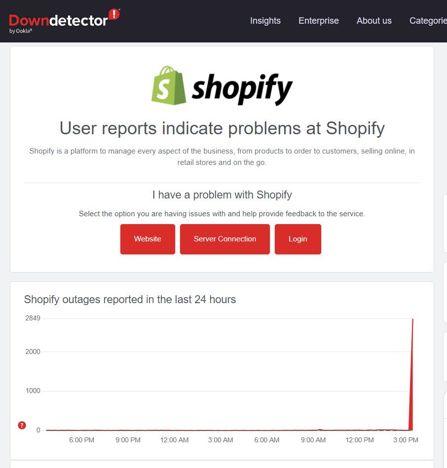 Shopify is experiencing a major outage today, with reports beginning to spike on DownDetector and social media 3PM Eastern.