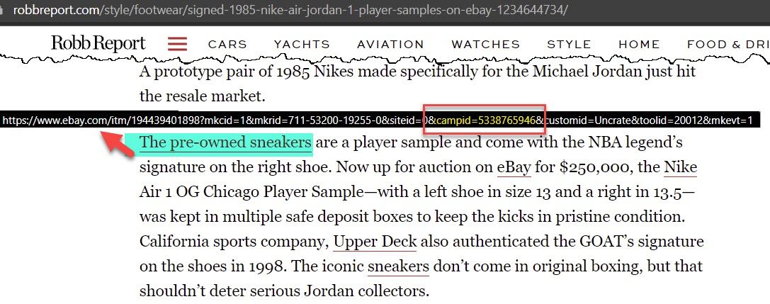 The use of an undisclosed eBay Partner Network affiliate link in that article is a violation of the terms of the eBay Partner Network agreement and FTC disclosure requirements.