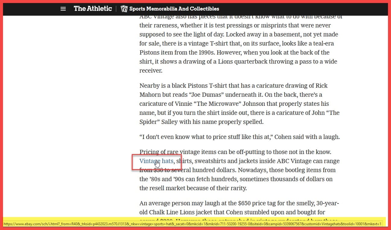 It looks like The Athletic readers were right to be skeptical as articles in this new memorabilia vertical are stuffed full of eBay affiliate links.