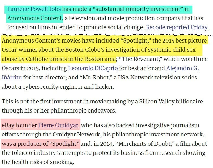 Concordia is funded by Apple co-founder Steve Jobs' widow, Laurene Powell Jobs, who has previously collaborated with Omidyar on various philanthropic and media projects, including Spotlight, an Oscar-winning movie about the Boston Globe's groundbreaking investigation into the Catholic church sex abuse scandal.