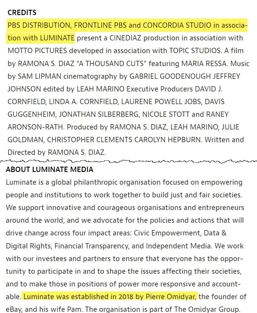 Omidyar Network was also heavily involved in funding Philippine news site Rappler Inc. and supporting Nobel laureate Maria Ressa's fight for press freedom in the region in 2015, including backing a documentary on the subject called "A Thousand Cuts" in partnership with Concordia Studio.