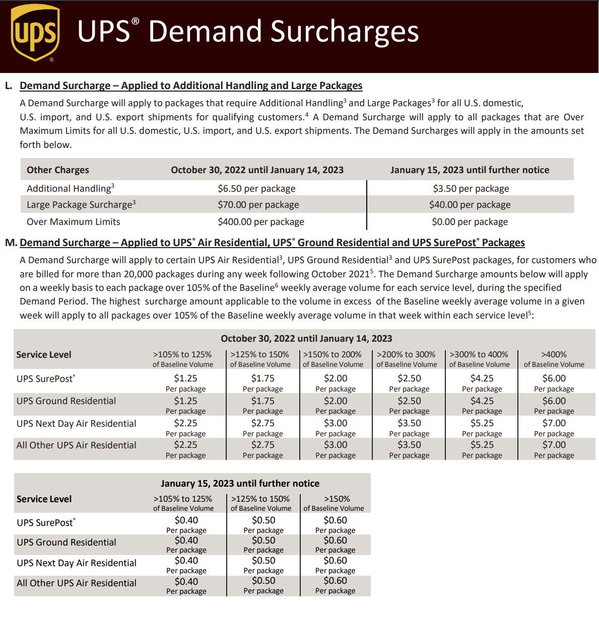 UPS extends residential peak surcharges past their usual date in mid-January and renames them as "demand" surcharges, leaving the door open for indefinite extension.
