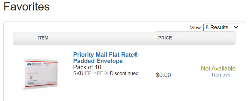 This previous link to the flat rate padded envelopes is no longer active and loyal reader FidoMaster reported this is what they see when looking at their saved favorites.