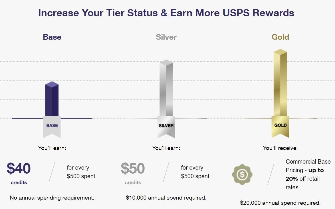 Previously, the USPS Loyalty Program was based on a tiered system depending on spend, earning points toward shipping credits when purchasing postage through Click-N-Ship and requiring a minimum of $20,000 a year to receive Commercial Base Pricing.