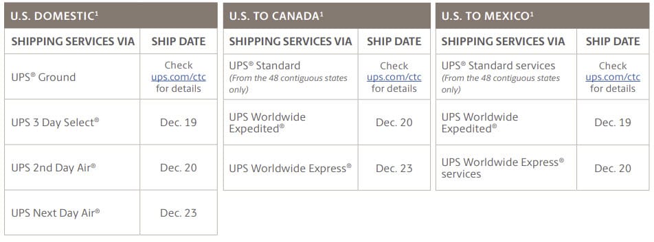 - UPS 2nd Day Air: Dec. 20