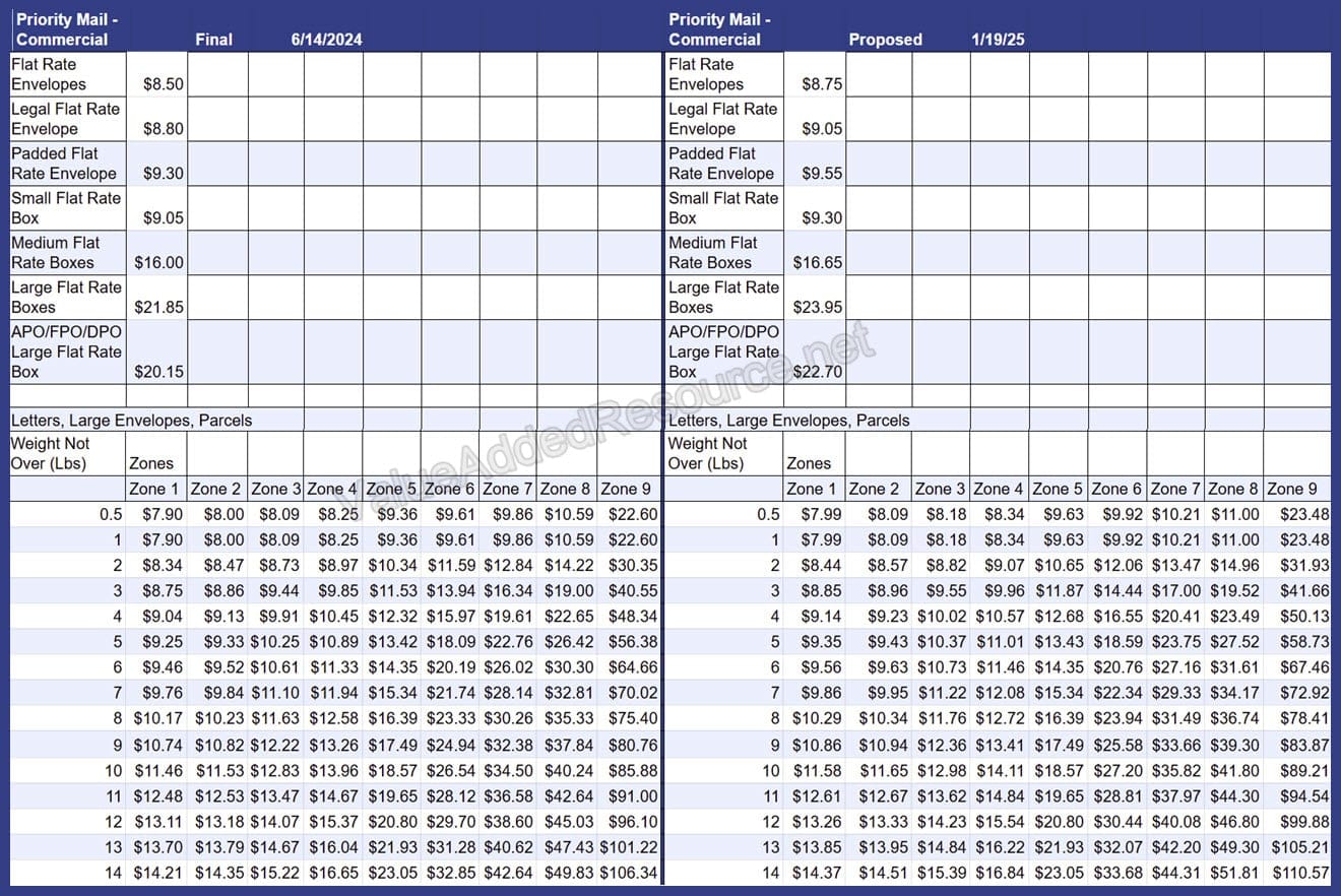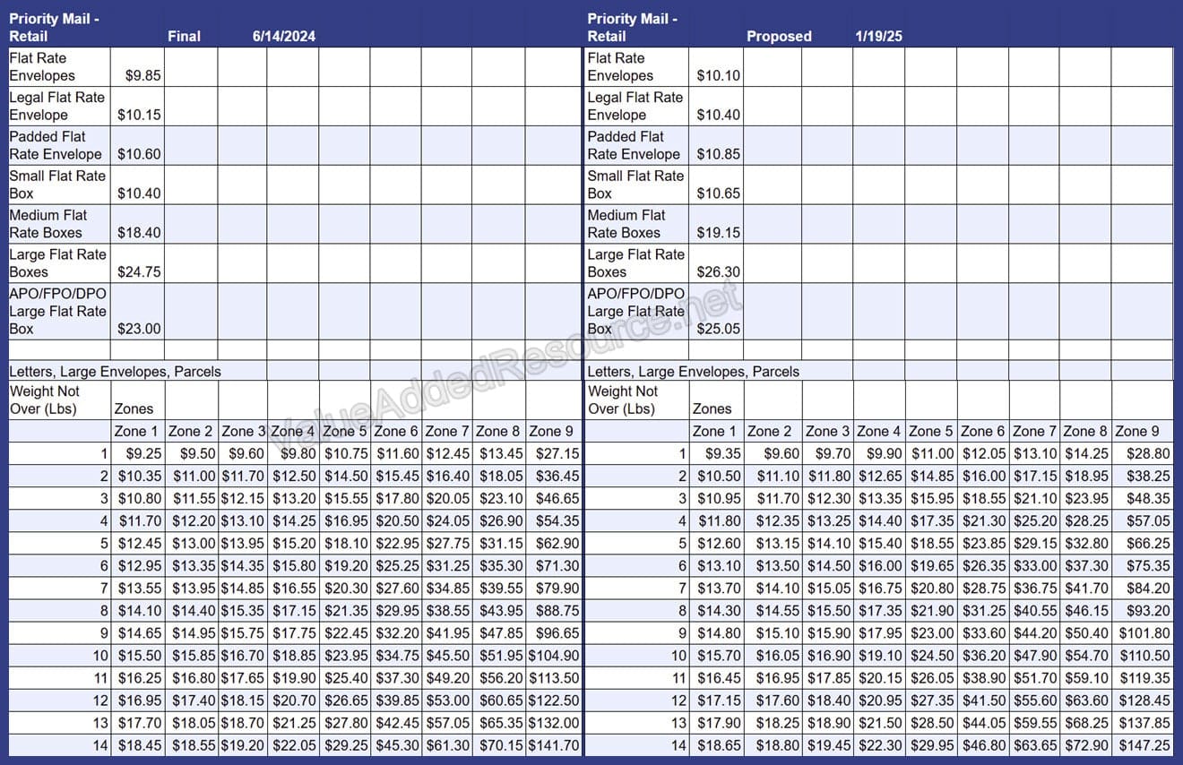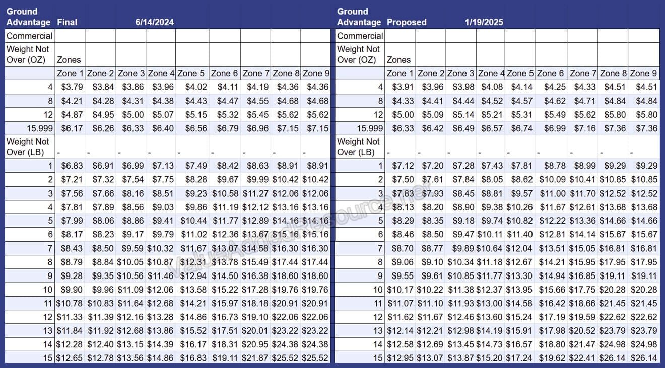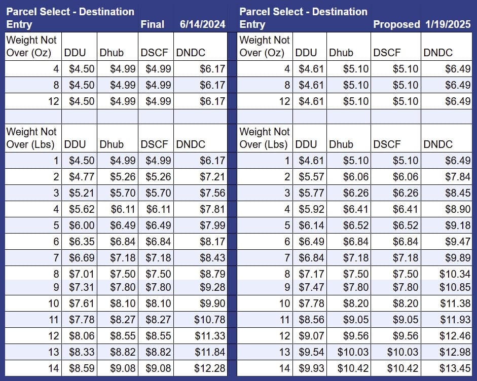 USPS January 2025 Rate Increase - Parcel Select, Ground Advantage, Priority Mail & More