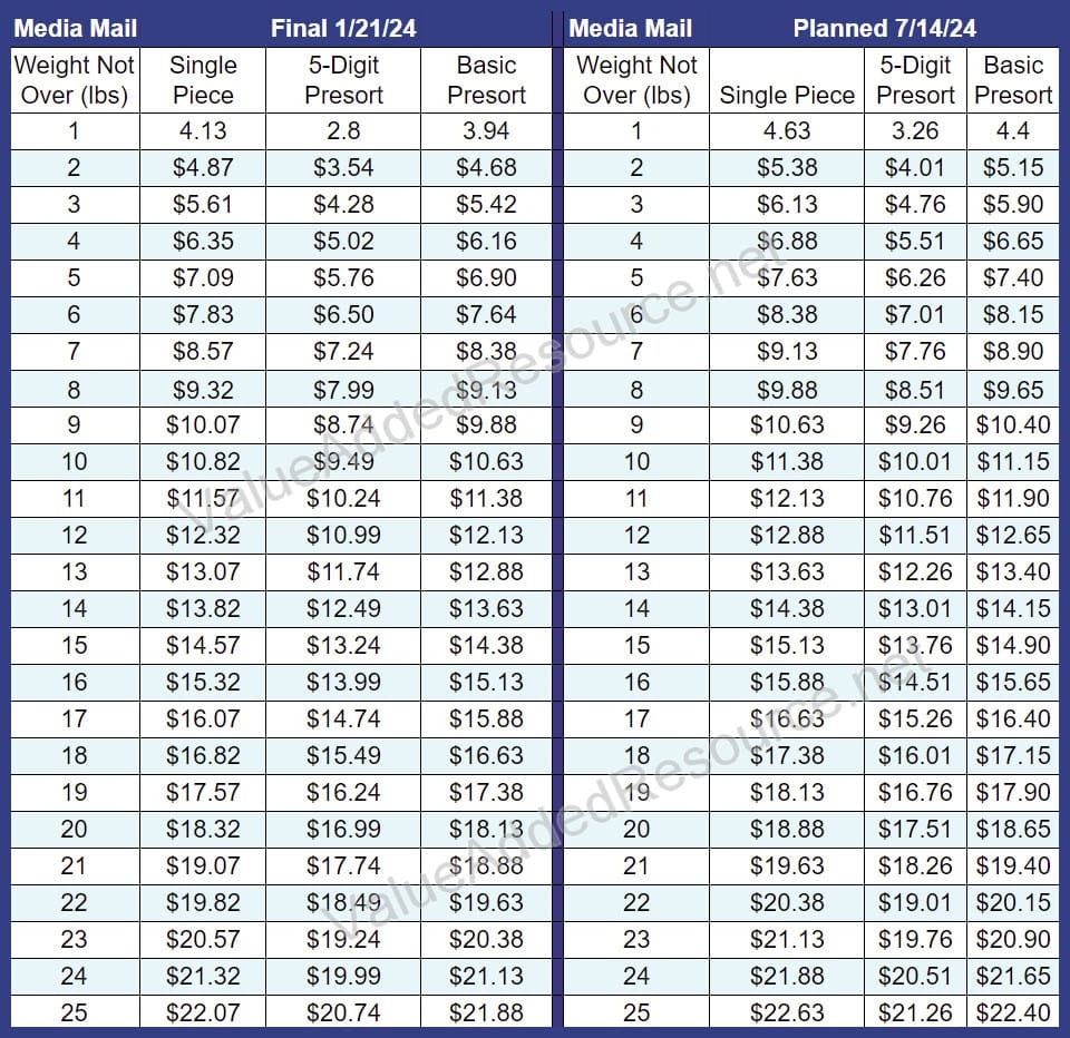 USPS Rate Increase On Market Dominant Products Like Media Mail For July 2024