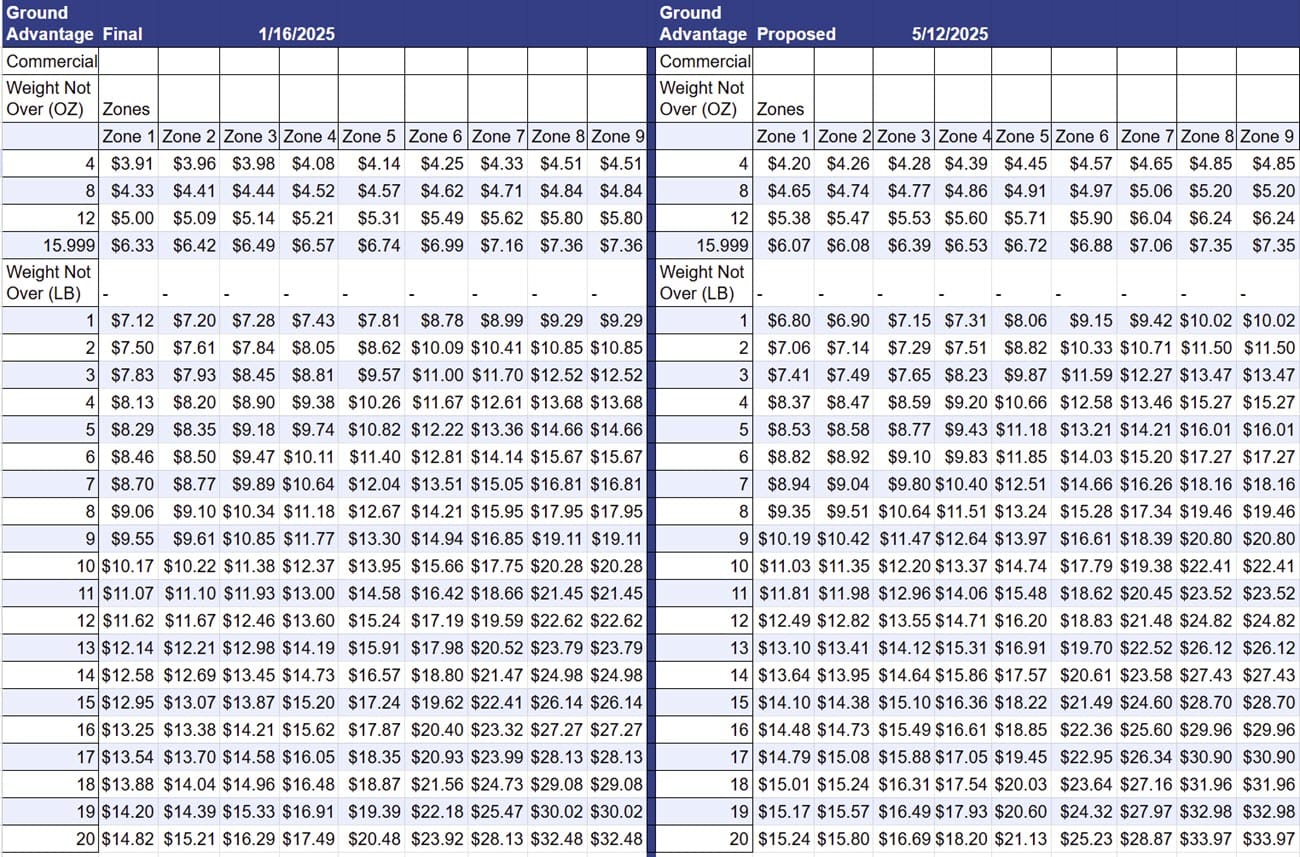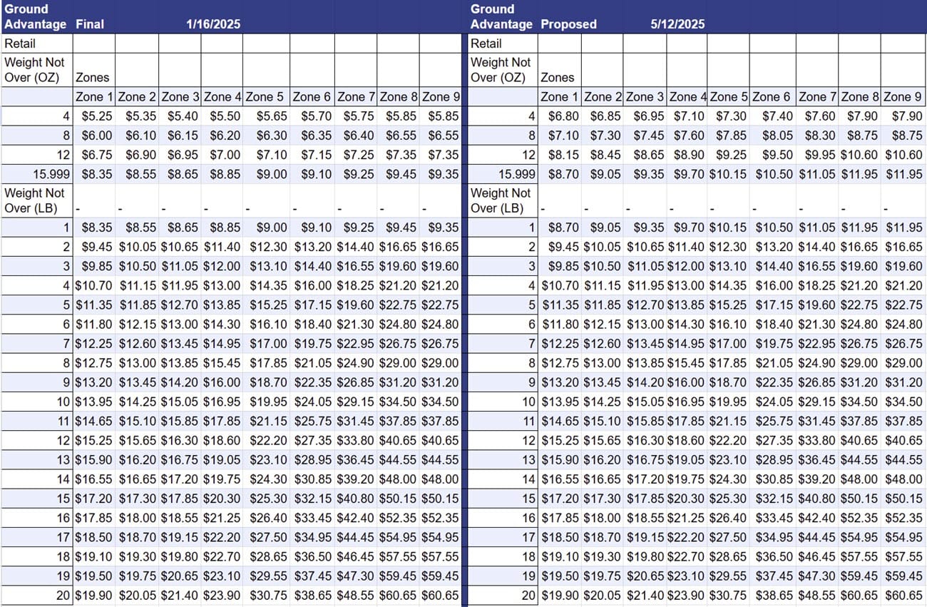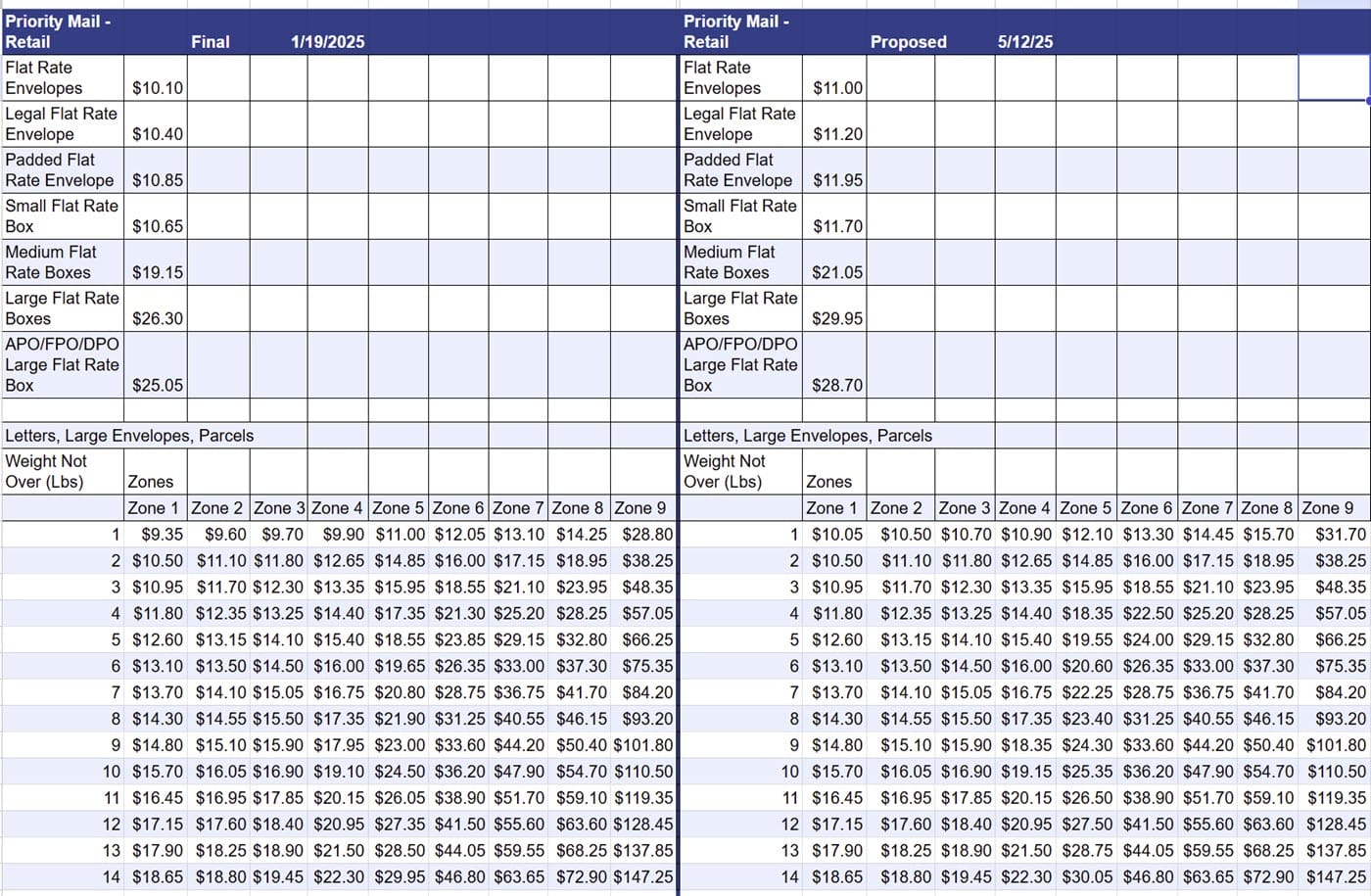 The Post Office also announced today they will be increasing rates for Competitive shipping products like Priority Mail, Ground Advantage, and Parcel Select, effective July 13, 2025